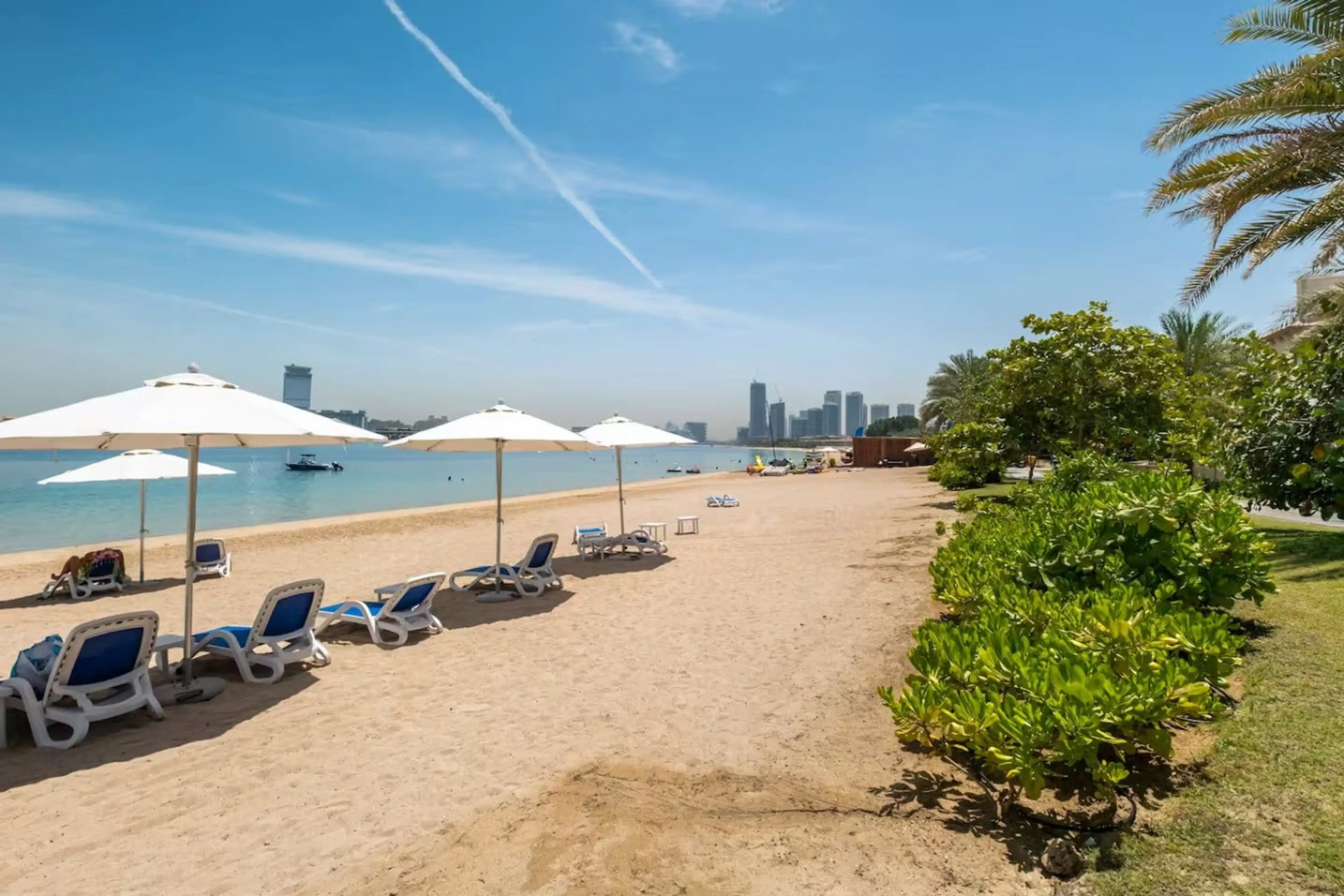 This beautiful fully-equipped 2-bedroom apartment is located on The Palm Jumeirah, Dubai's popular landmark, has the BEST VIEW in the building. It is perfect for family vacations. Available to you are our private BEACH and POOL and fully equipped apartment with kitchen. You can enjoy the view from...
