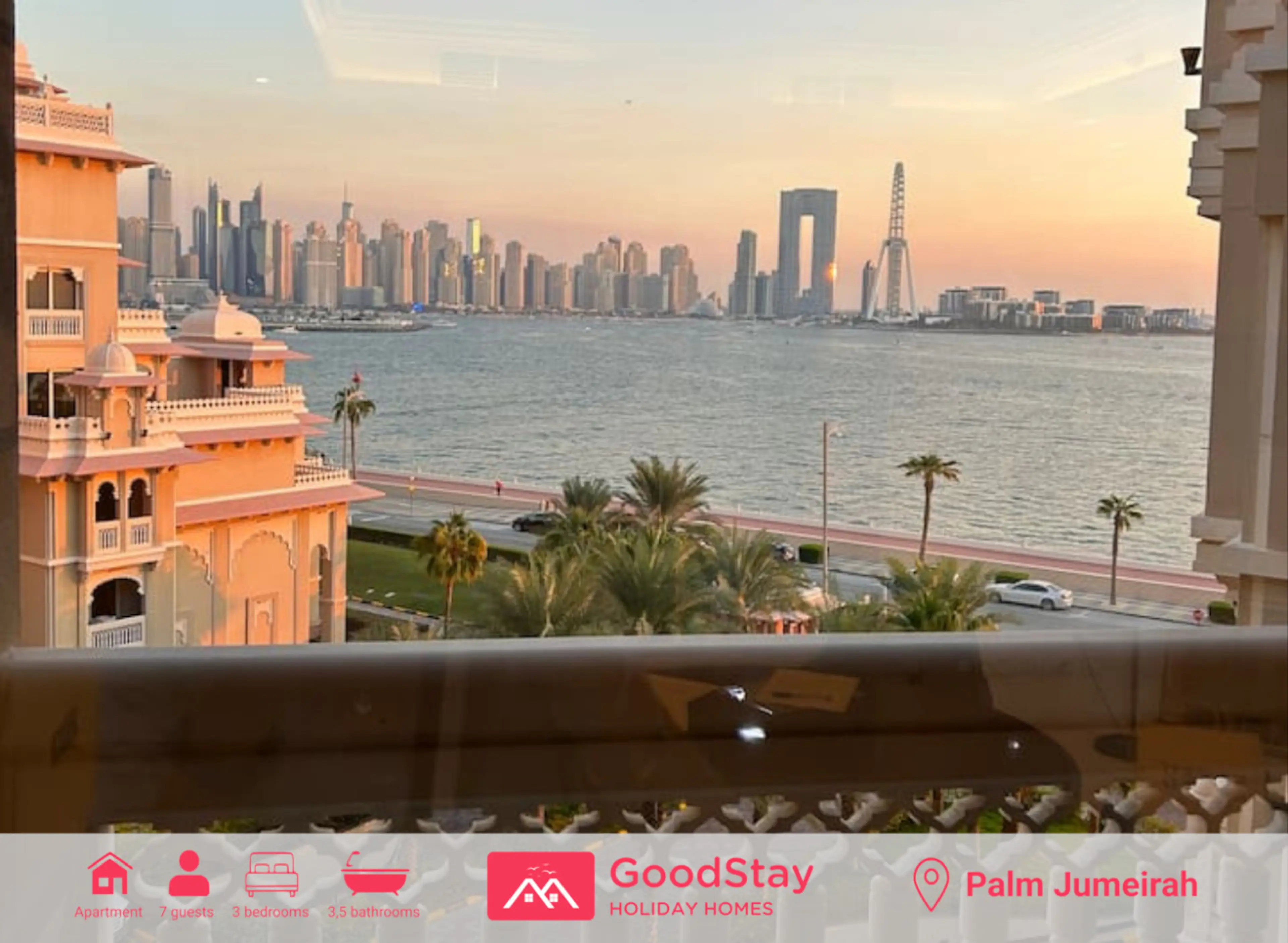 This beautiful fully-equipped 2-bedroom apartment is located on The Palm Jumeirah, Dubai's popular landmark, has the BEST VIEW in the building. It is perfect for family vacations. Available to you are our private BEACH and POOL and fully equipped apartment with kitchen. You can enjoy the amazing v...