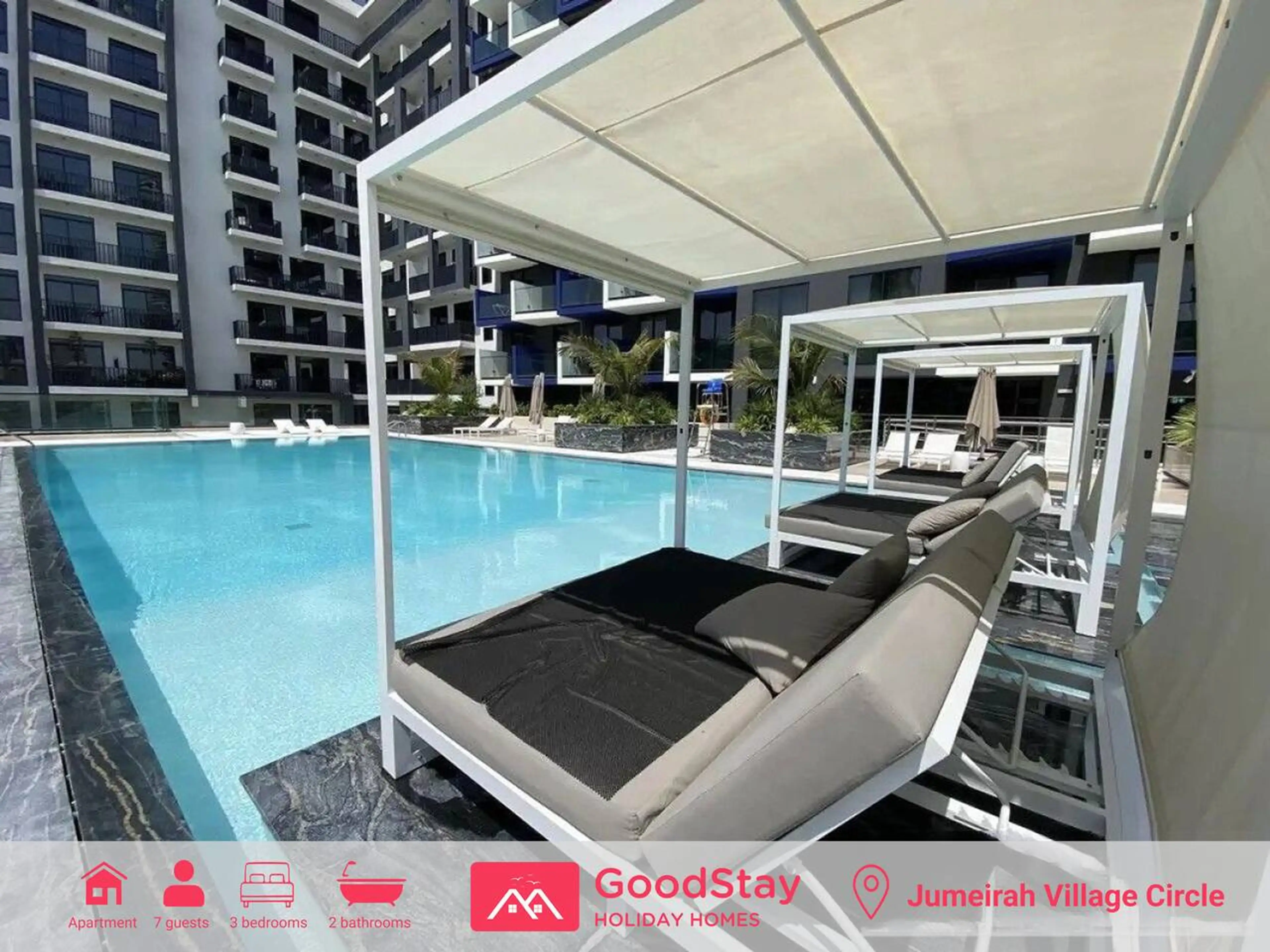 This 3BDR apartment opens an AMAZING view of the whole JVC from a high floor from 3 balconies. The apartment is fully equipped with everything needed for a comfortable family stay. The kitchen is fully equipped with pots and pans, much more and even coffee! Binghatti Crest is a new building in a c...