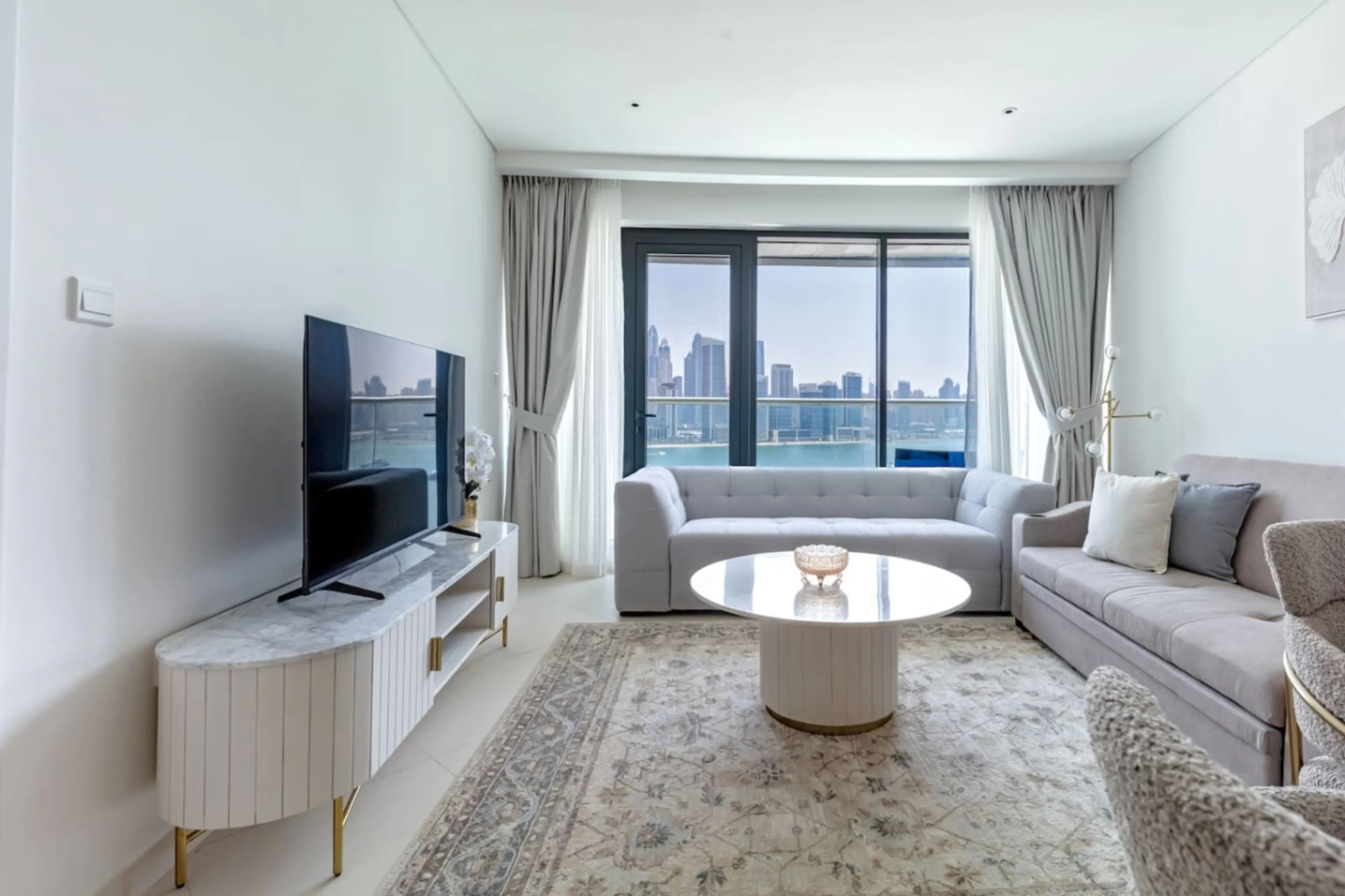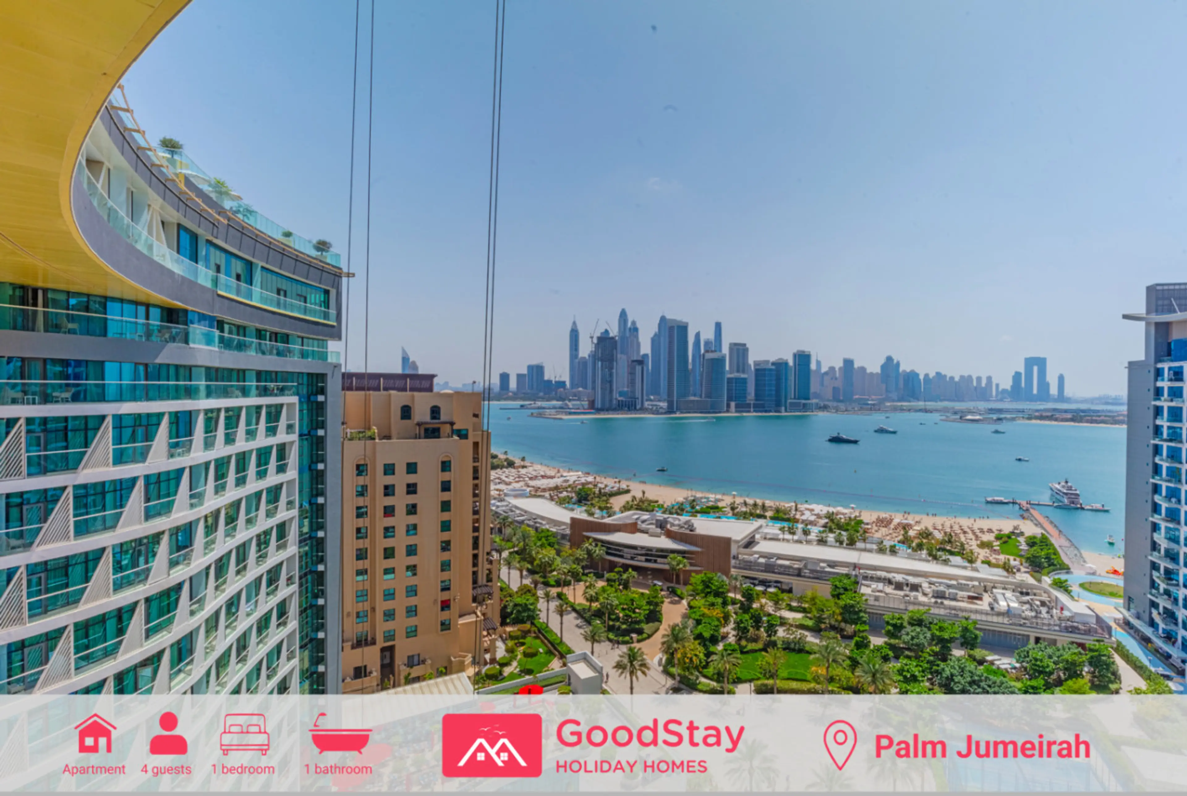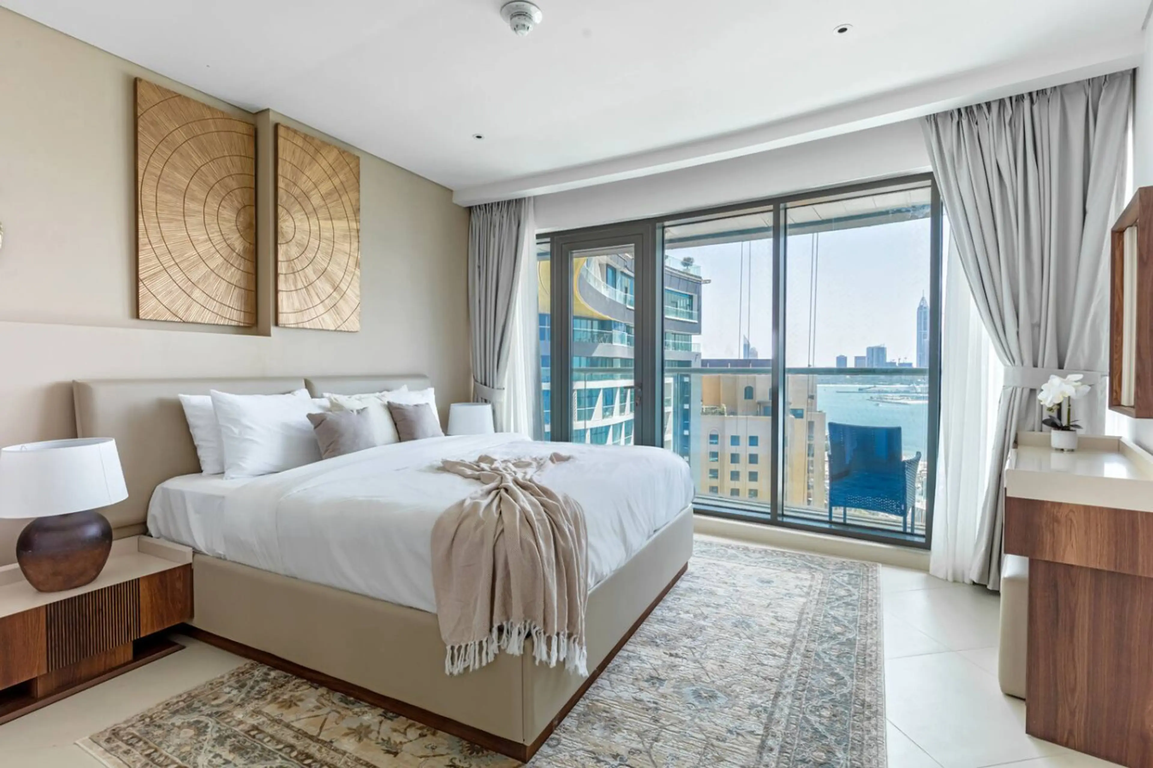 This premium FULL SEA VIEW 1-bedroom apartment has the best view in the building. It's located in Palm Jumeirah, a famous landmark of Dubai. KITCHEN is equipped with everything you could need for cooking: pots, pans, dishes, glasses, etc. BATHROOM is equipped with a shower gel and shampoo. TV is c...