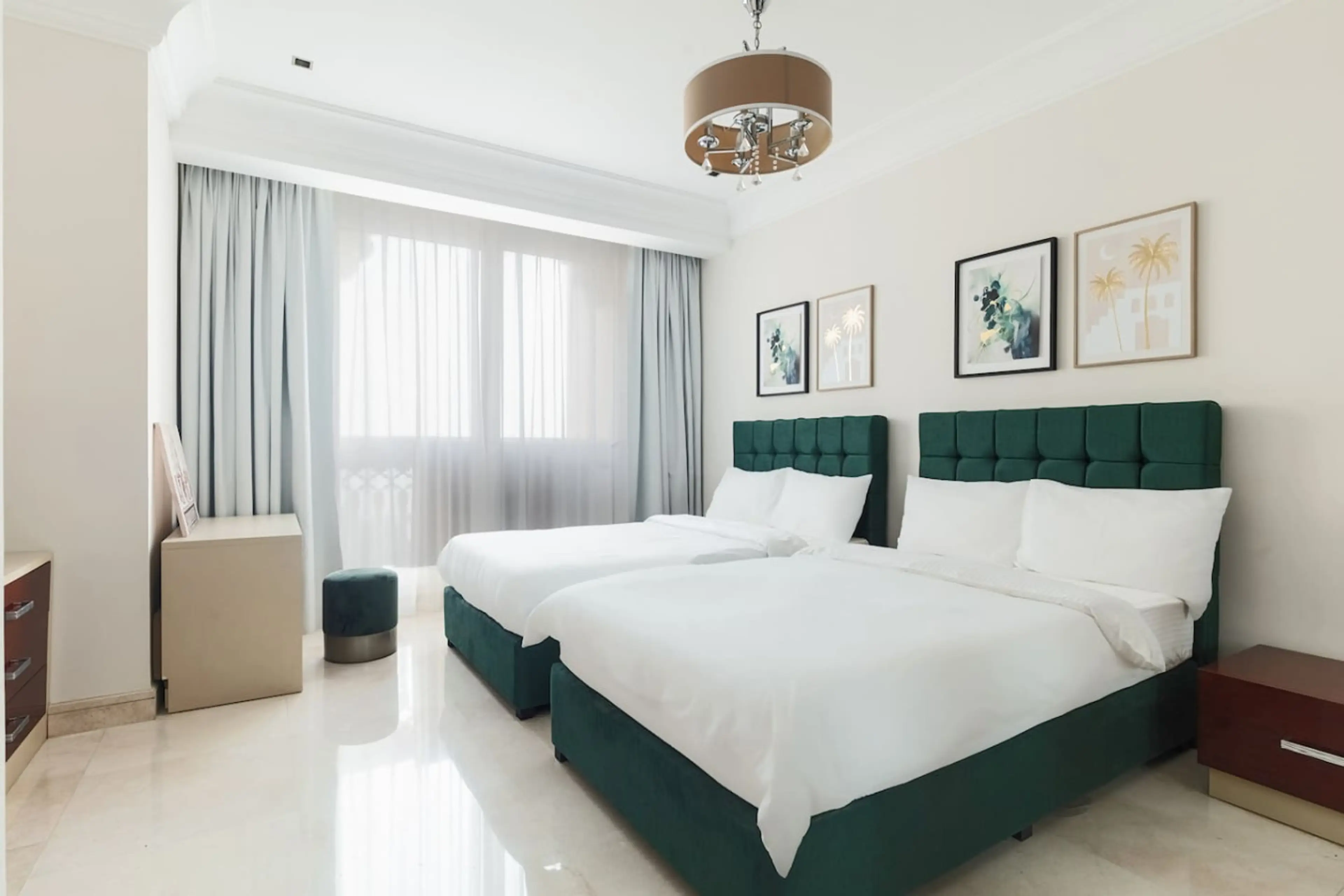 This beautiful fully-equipped 2 bedroom apartment is located on The Palm Jumeirah, Dubai's popular landmark. It is perfect for family vacations. Available to you are our private BEACH and POOL and fully equipped apartment with kitchen. It has everything needed for a comfortable stay, fully-equippe...