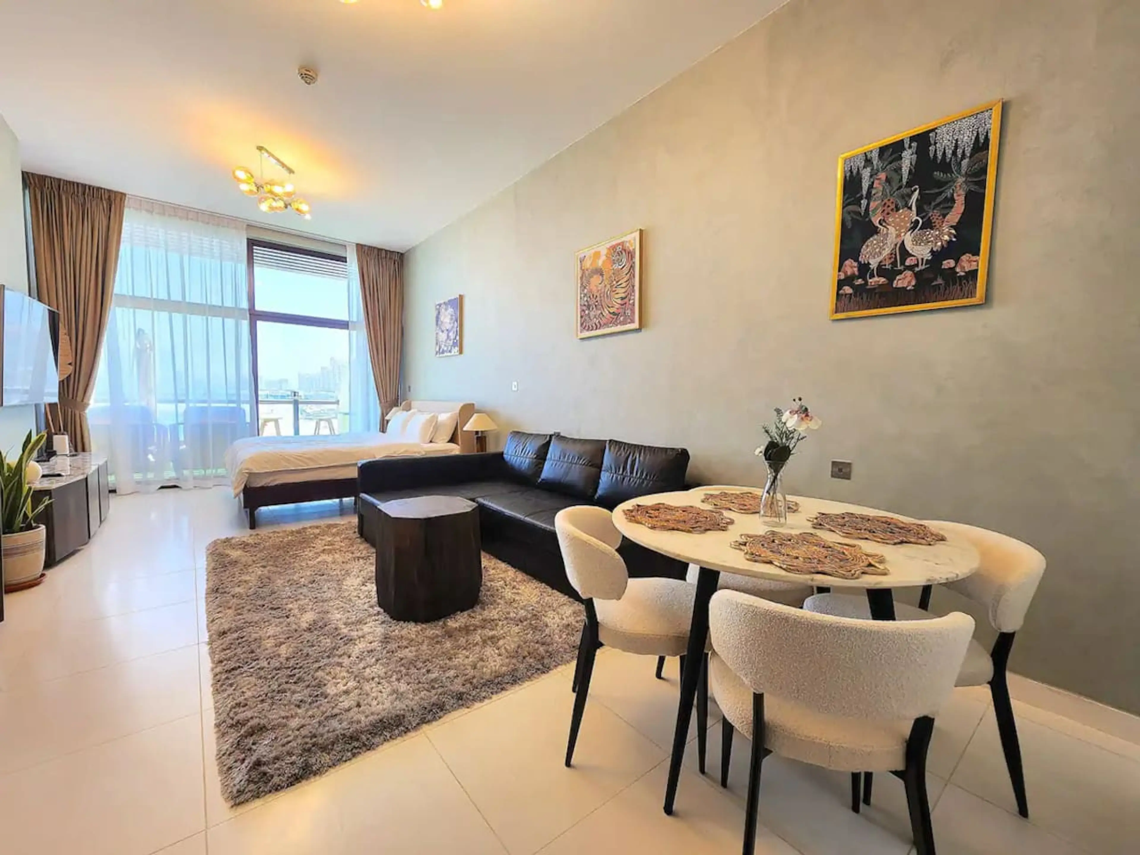 This SPACIOUS and luxury studio apartment is fully-equipped for 4 people Large & spacious apartment for 2 adults & 2 kids. POOL & BEACH in *Riva Beach Club* is completely free including sun loungers and towels! BIG MALL right across the road. Supermarket next door. Free PARKING, Free BEACH AND...