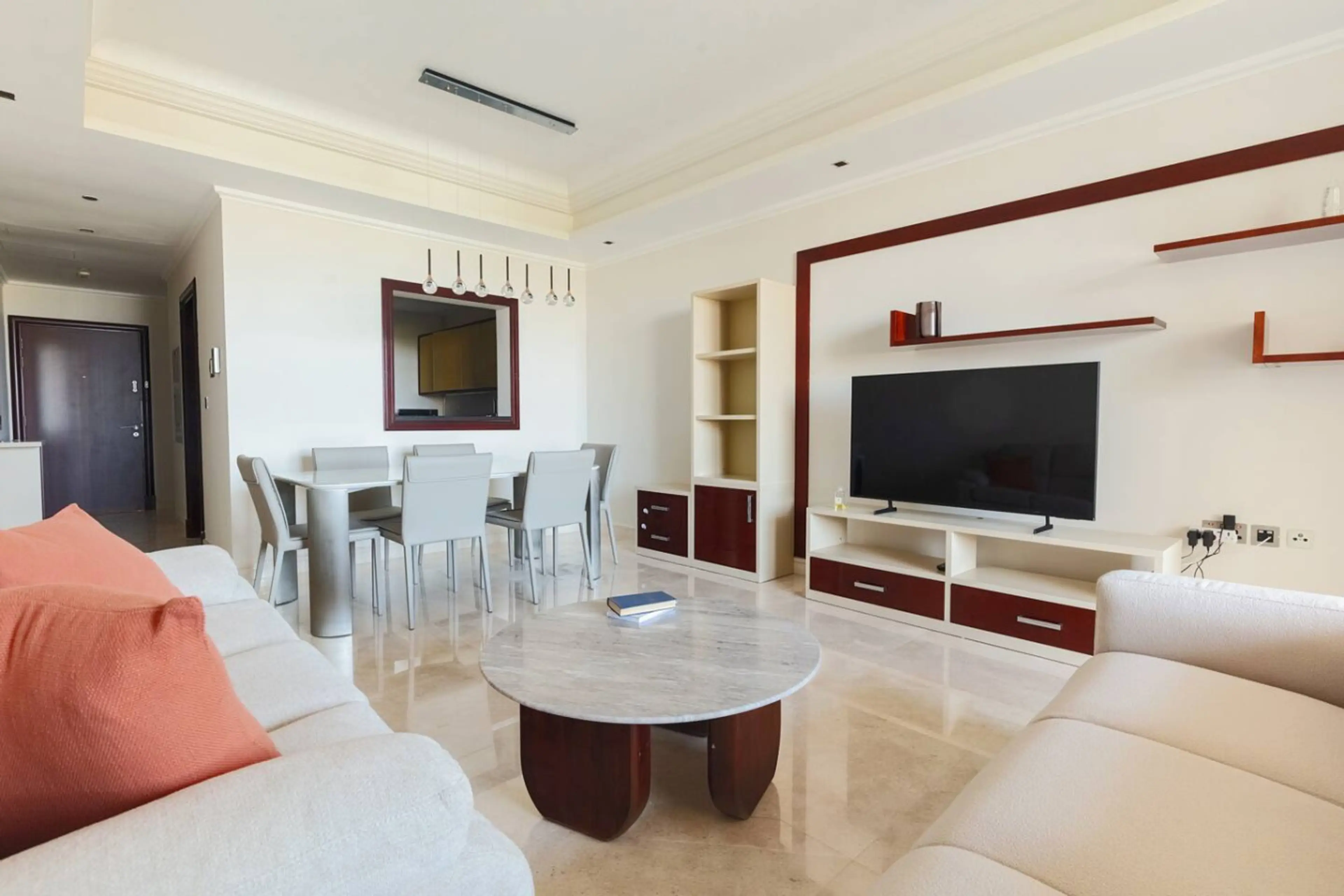 This beautiful fully-equipped 2-bedroom apartment is located on The Palm Jumeirah. There is a wonderful view on Atlantis and the pool from a spacious balcony, biggest in the building. It is perfect for family vacations. Available to you are our private BEACH and POOL and fully equipped apartment w...