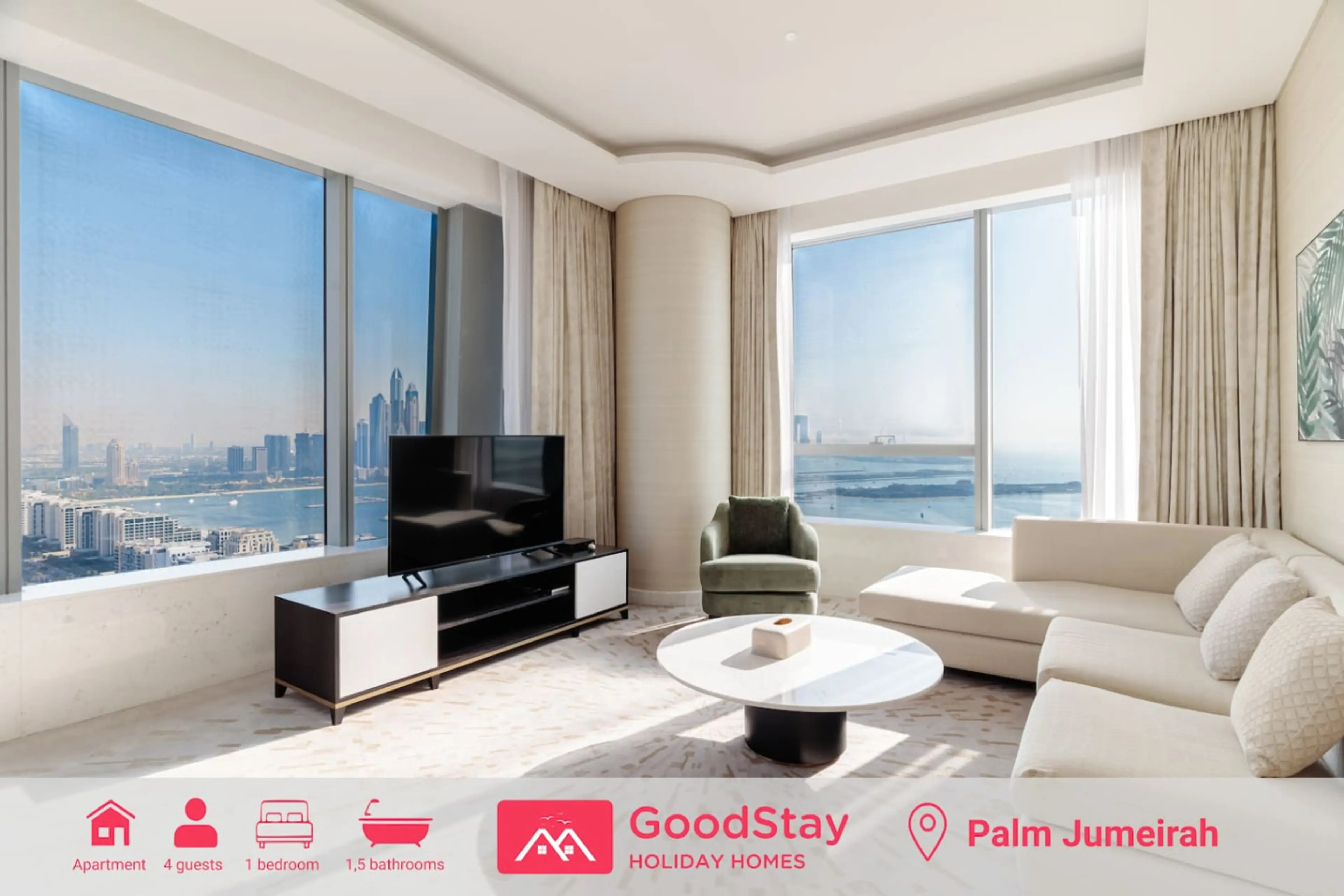 This 1-bedroom apartment has the best VIEW on The Palm. It's a corner unit with panoramic views on two sides. It can accommodate 4 guests. Guests have access to the facilities of The St. Regis Dubai Hotel: 2 infinity pools, well-equipped 24/7 gym, bars and restaurants. It's directly connected to ...