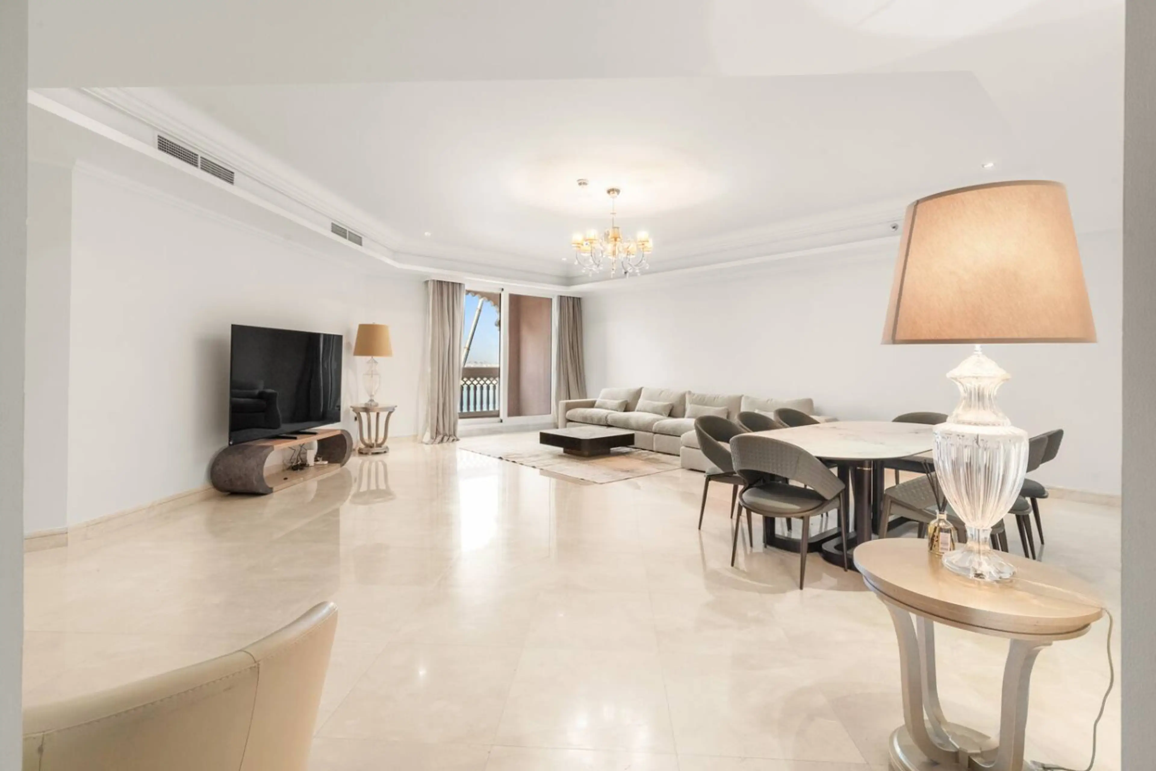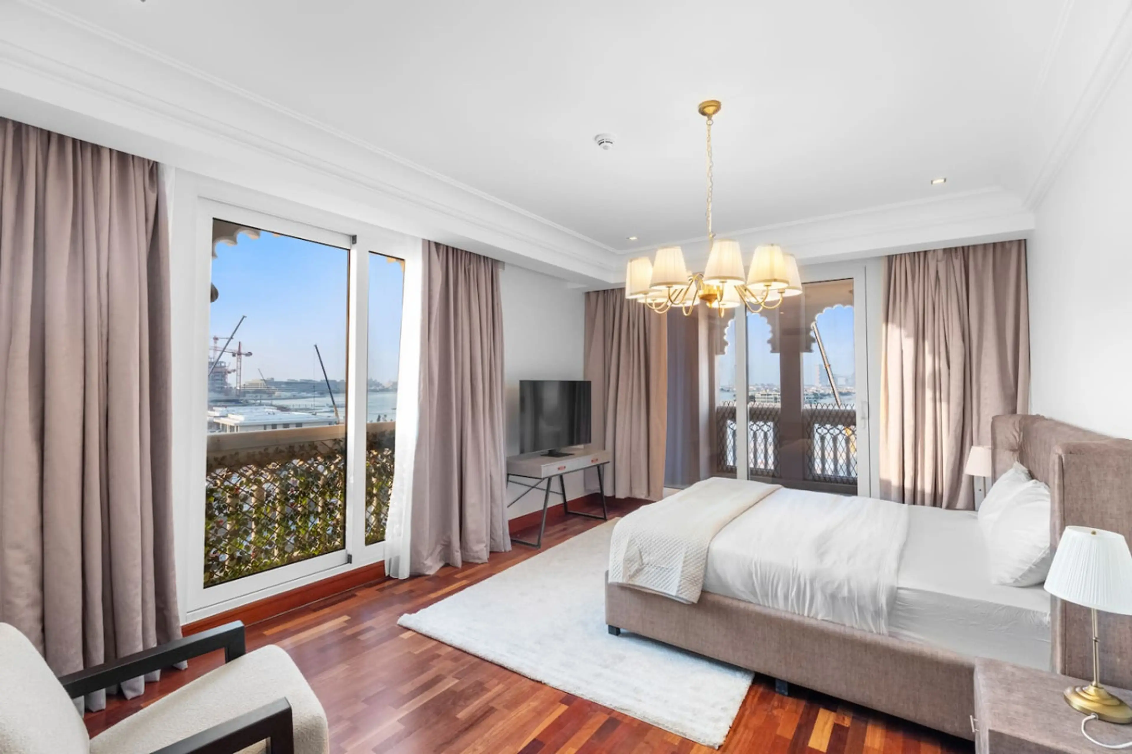 This spacious fully-equipped 4-bedroom apartment with JACUZZI is located on The Palm Jumeirah, Dubai's very popular landmark, and has a huge terrace with the SEA VIEW. Available to you are on-premise BEACH and POOL and fully equipped apartment with stocked kitchen with everything needed to live. N...