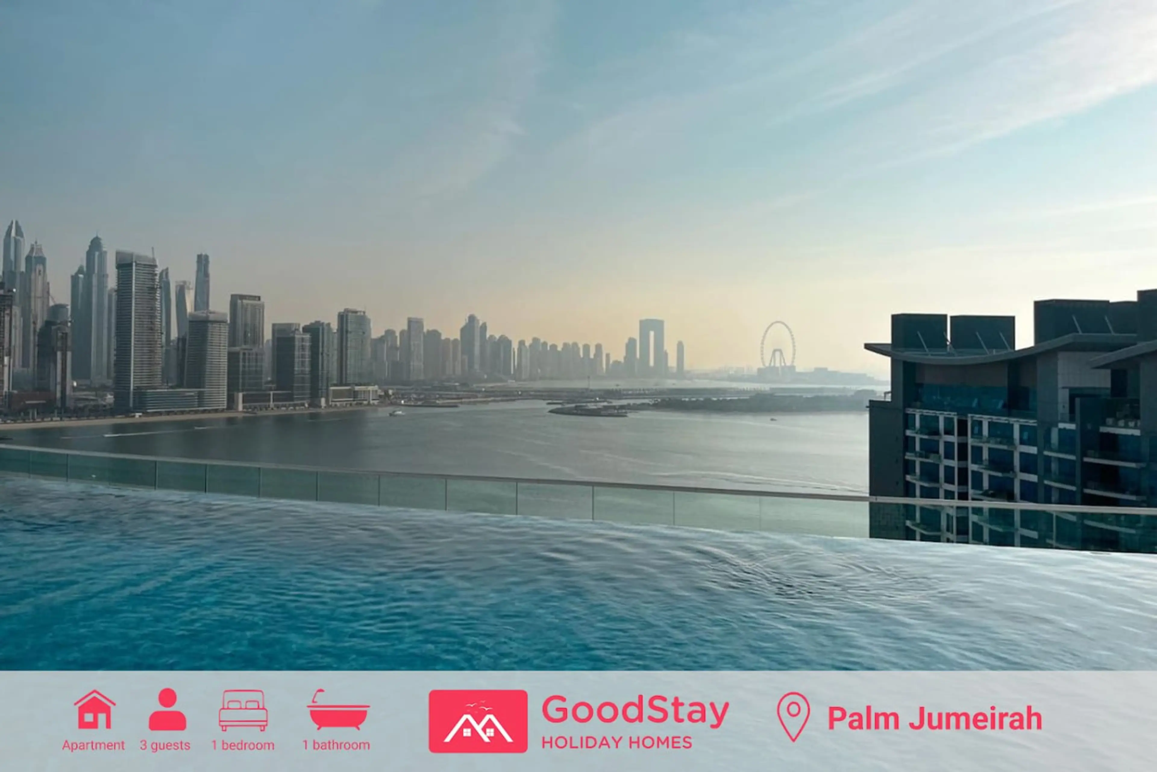 This beautiful fully-equipped 1-bedroom apartment is located on The Palm Jumeirah, Dubai's very popular landmark. There is a spacious balcony with the FULL SEA VIEW. Available to you are the PRIVATE BEACH and amazing INFINITY POOL for FREE with a full view on Palm Jumeirah and Dubai. Fully equi...