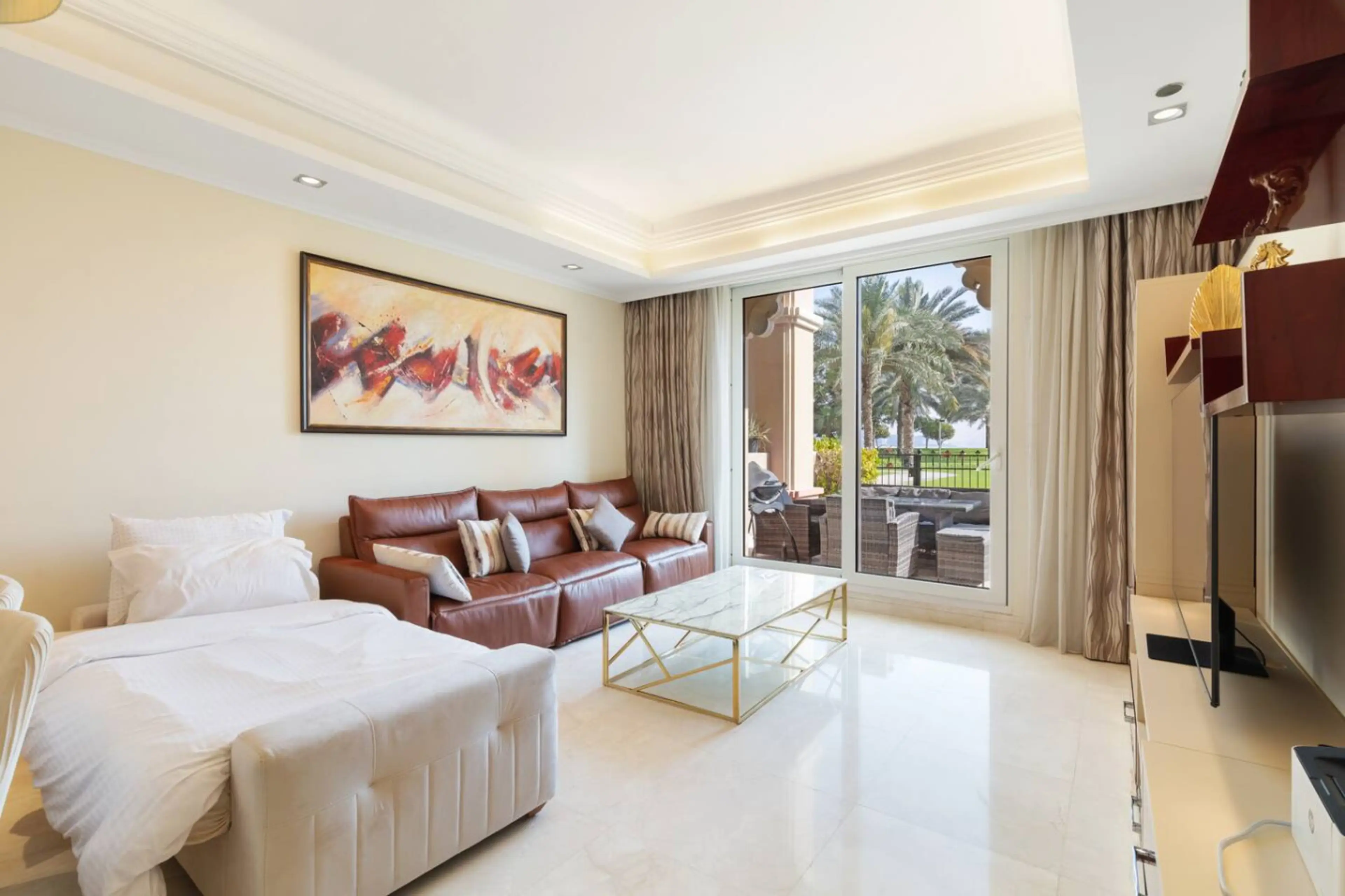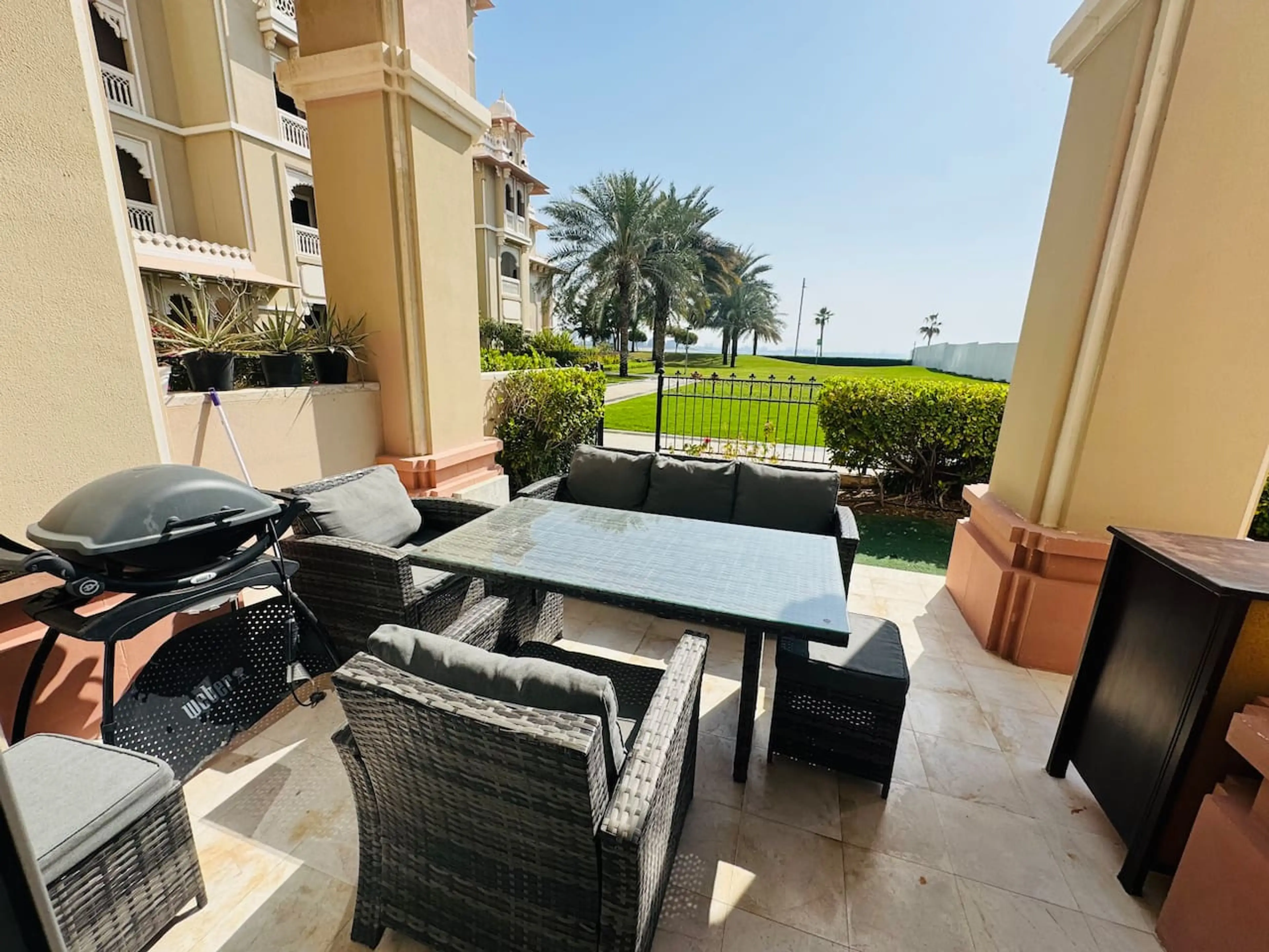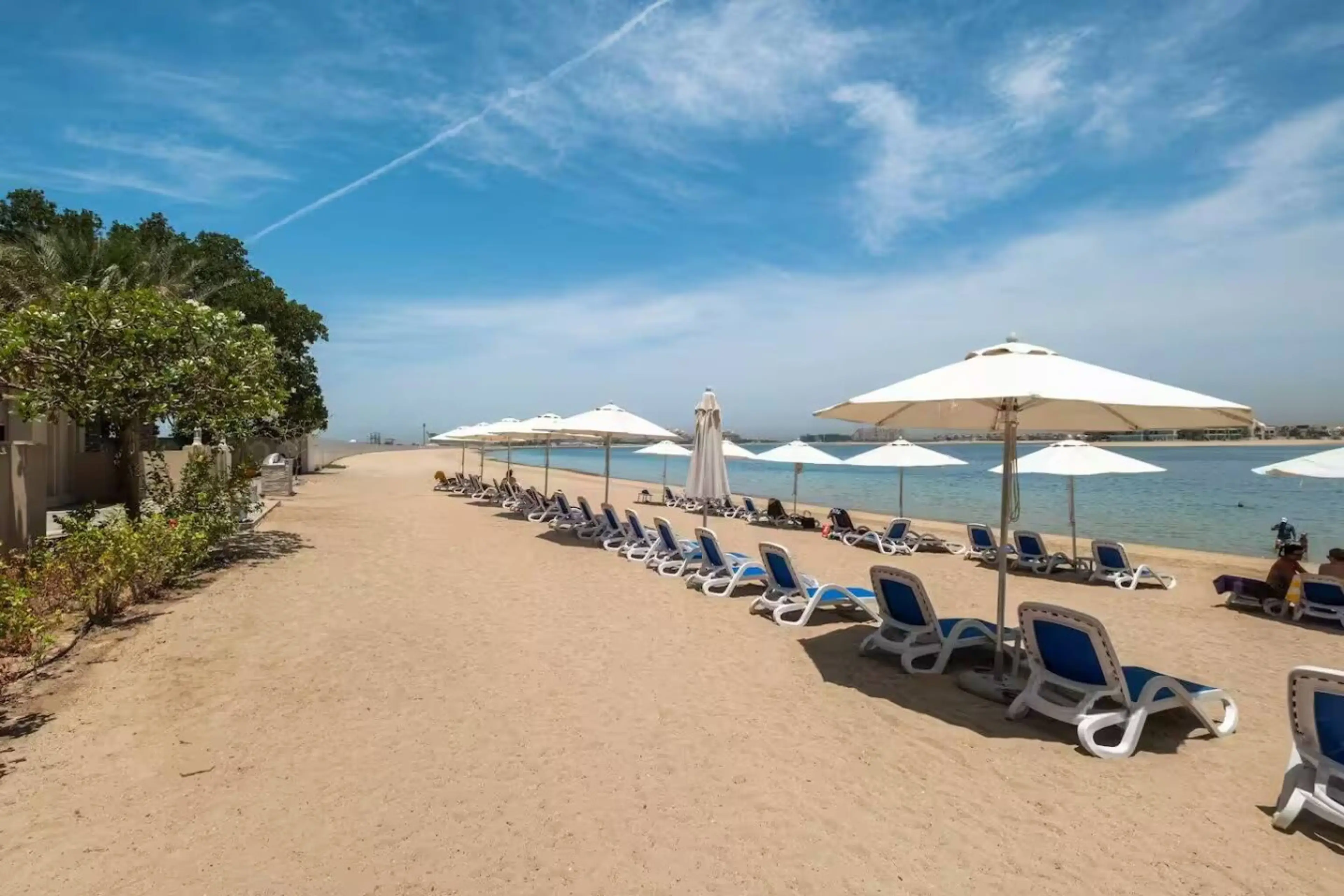 This beautiful fully-equipped 2-bedroom apartment is located on The Palm Jumeirah, Dubai's popular landmark. It is perfect for family vacations and can accommodate up to 7 guests. Available to you are our private BEACH and POOL and fully equipped apartment with a kitchen. You can enjoy the garde...