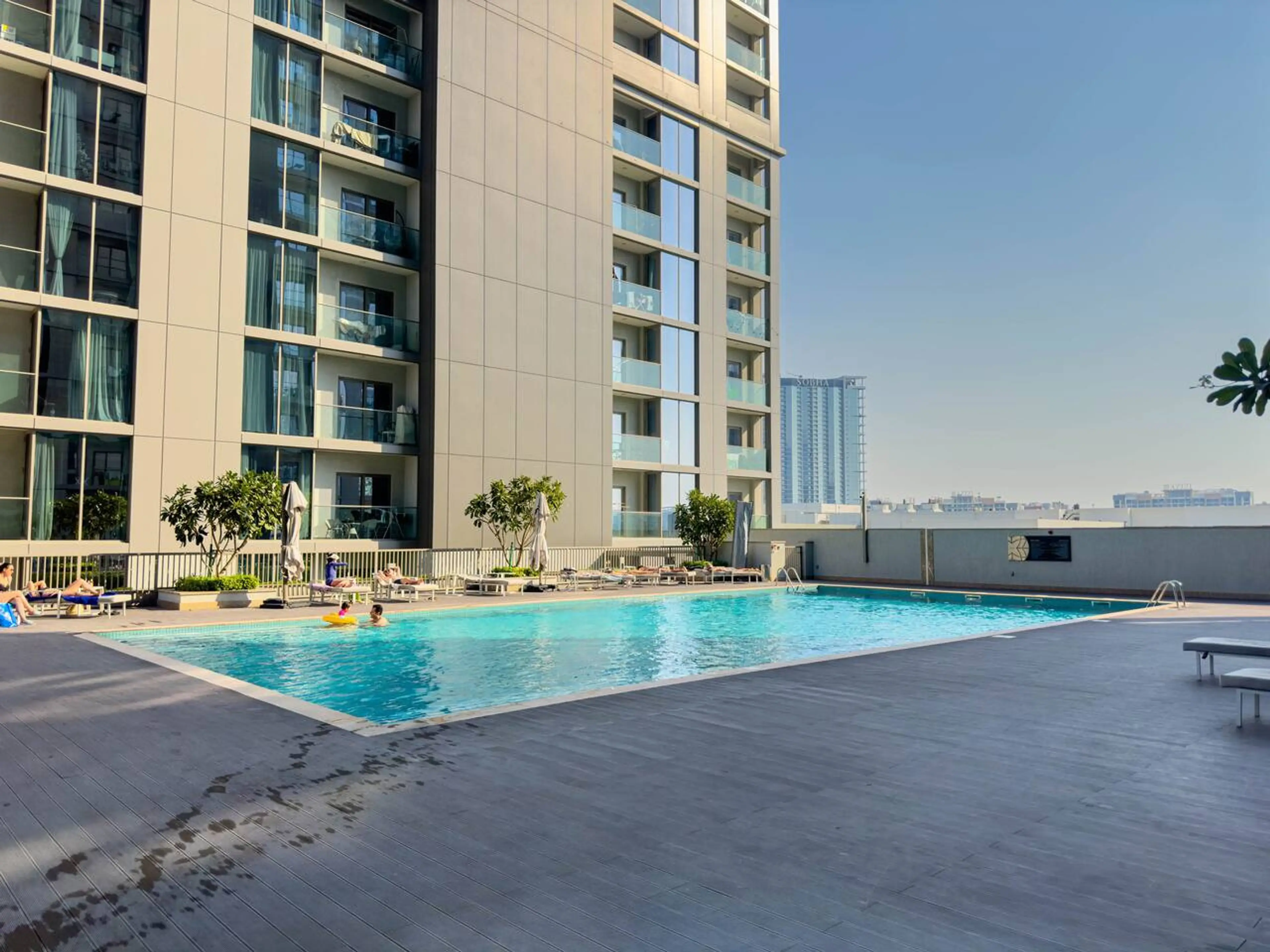This spacious, fully-equipped 1-bedroom apartment is in the heart of MBR City. It has its own private POOL, GYM, children's PLAYGROUND and and 24/7 security. Located on the 17th floor, it offers stunning views of Downtown Dubai. (Please, pay attention that there's a construction site nearby) The a...