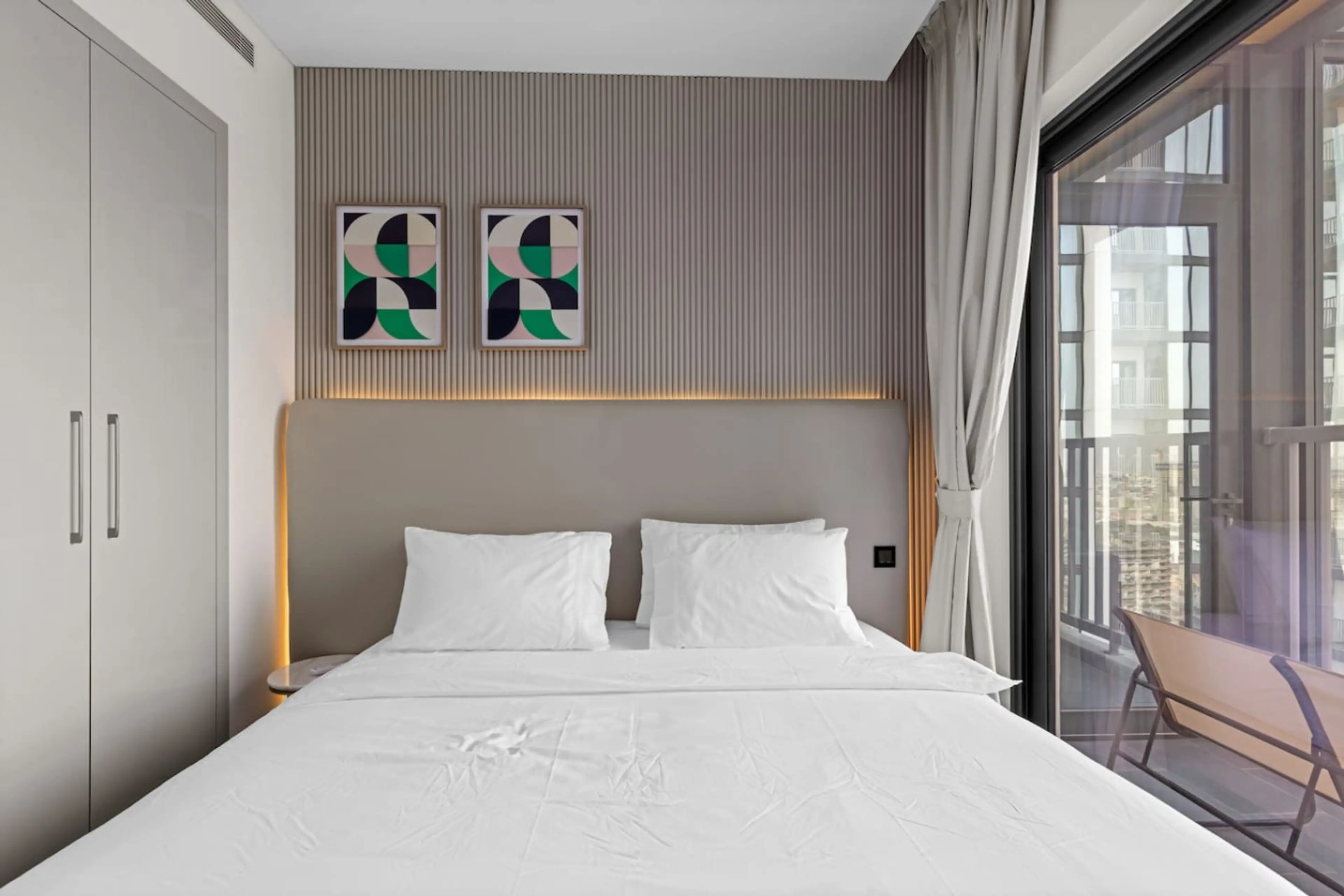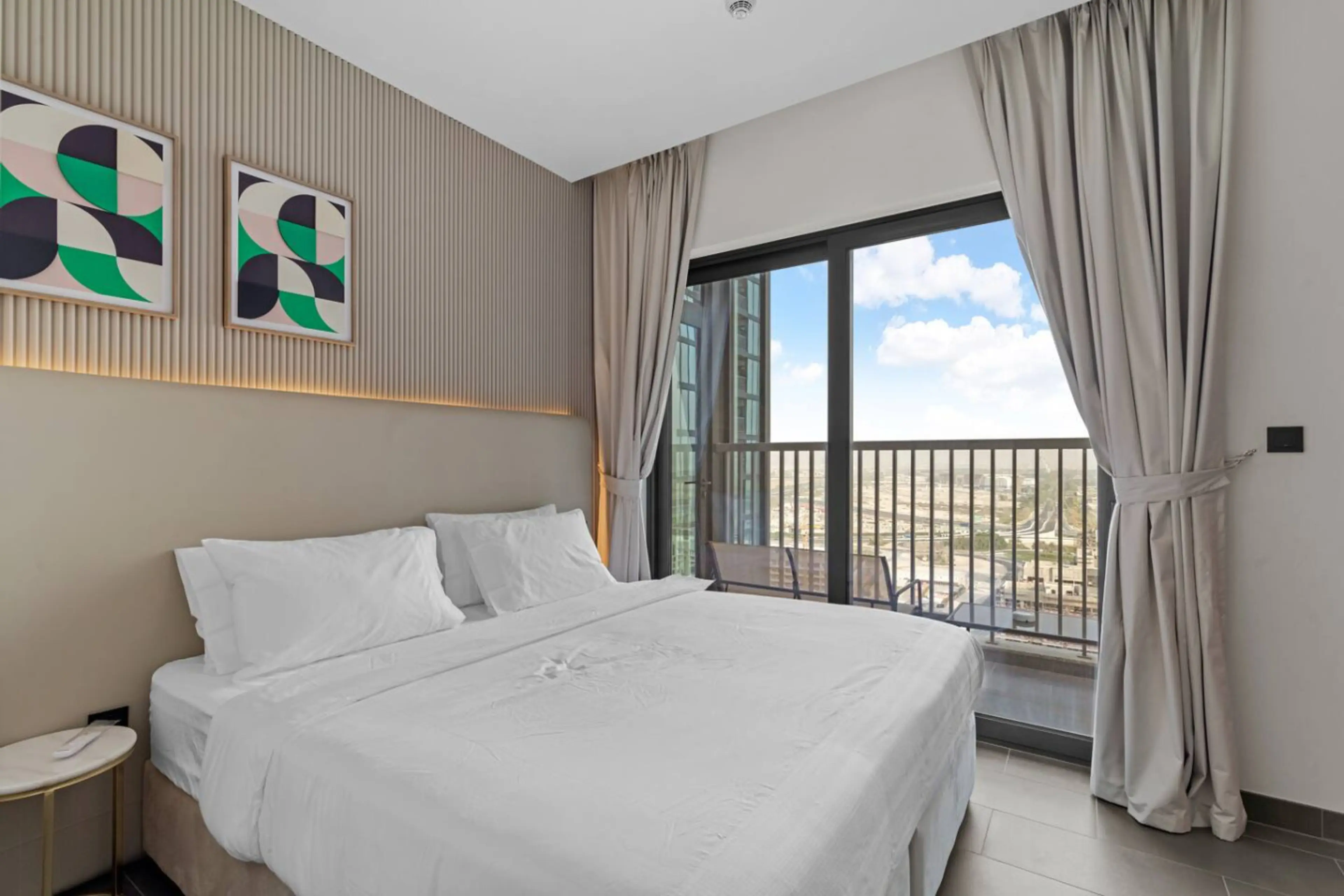 This 2BDR apartment opens an AMAZING view on Sobha. The apartment is equipped with everything you need for a comfortable stay. Kitchen is fully equipped with pots and pans, even coffee! The Crest Sobha Hartland is a new building in a conveniently-designed luxury area. The building facilities includ...