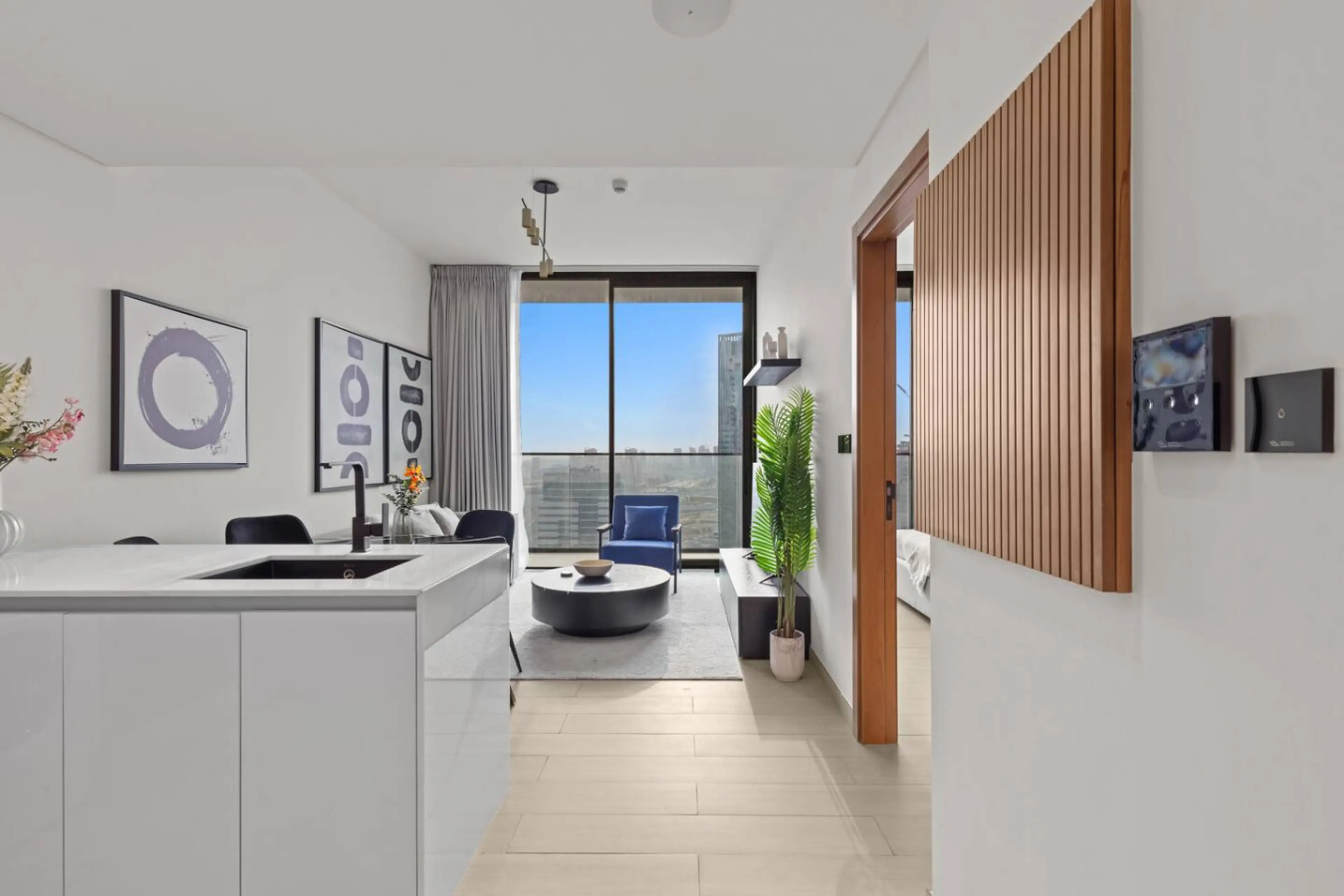 This 1BDR apartment opens an AMAZING view of the whole JVC from a high floor. The apartment is fully equipped with everything needed for a comfortable family stay. The kitchen is fully equipped with pots and pans, much more and even coffee! Binghatti Venus is a new building in a conveniently desig...