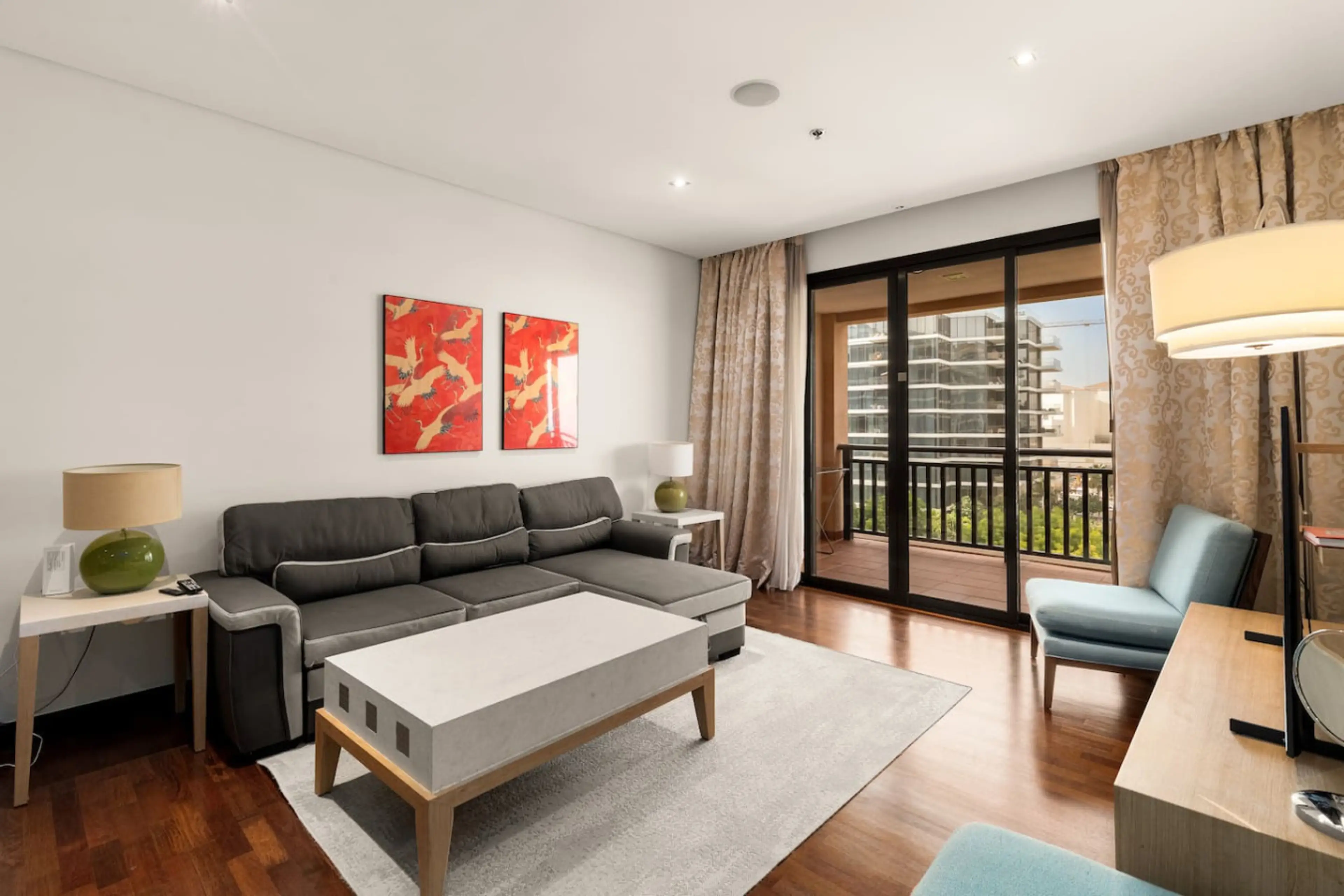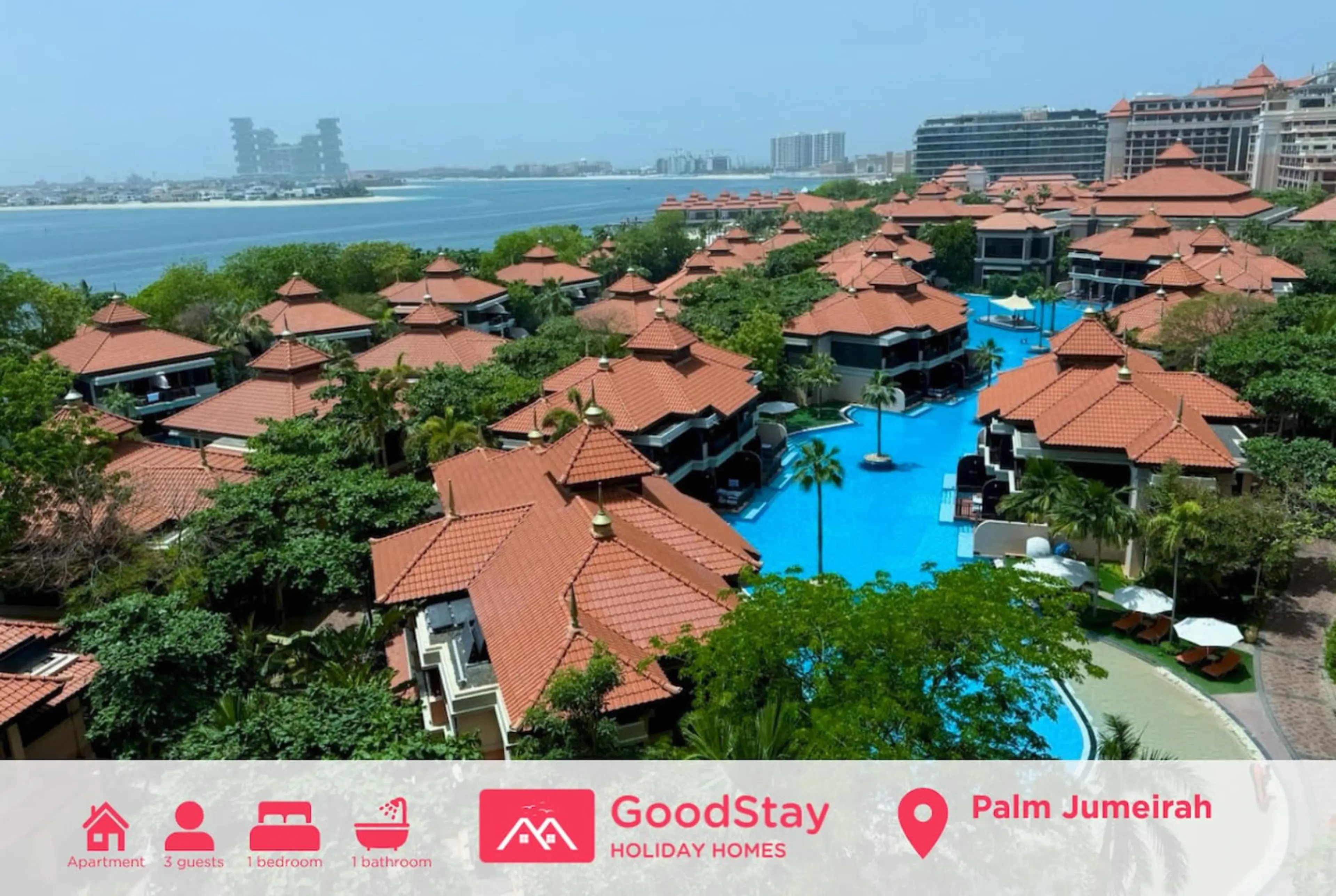This peaceful 1-bedroom apartment is located on The Palm Jumeirah, Dubai's very popular landmark, and has a view on the inner pool. Available to you are on-premise BEACH and POOL for FREE. The apartment is completely equipped with everything: pots and pans, shampoo, shower gel, coffee, etc. The be...