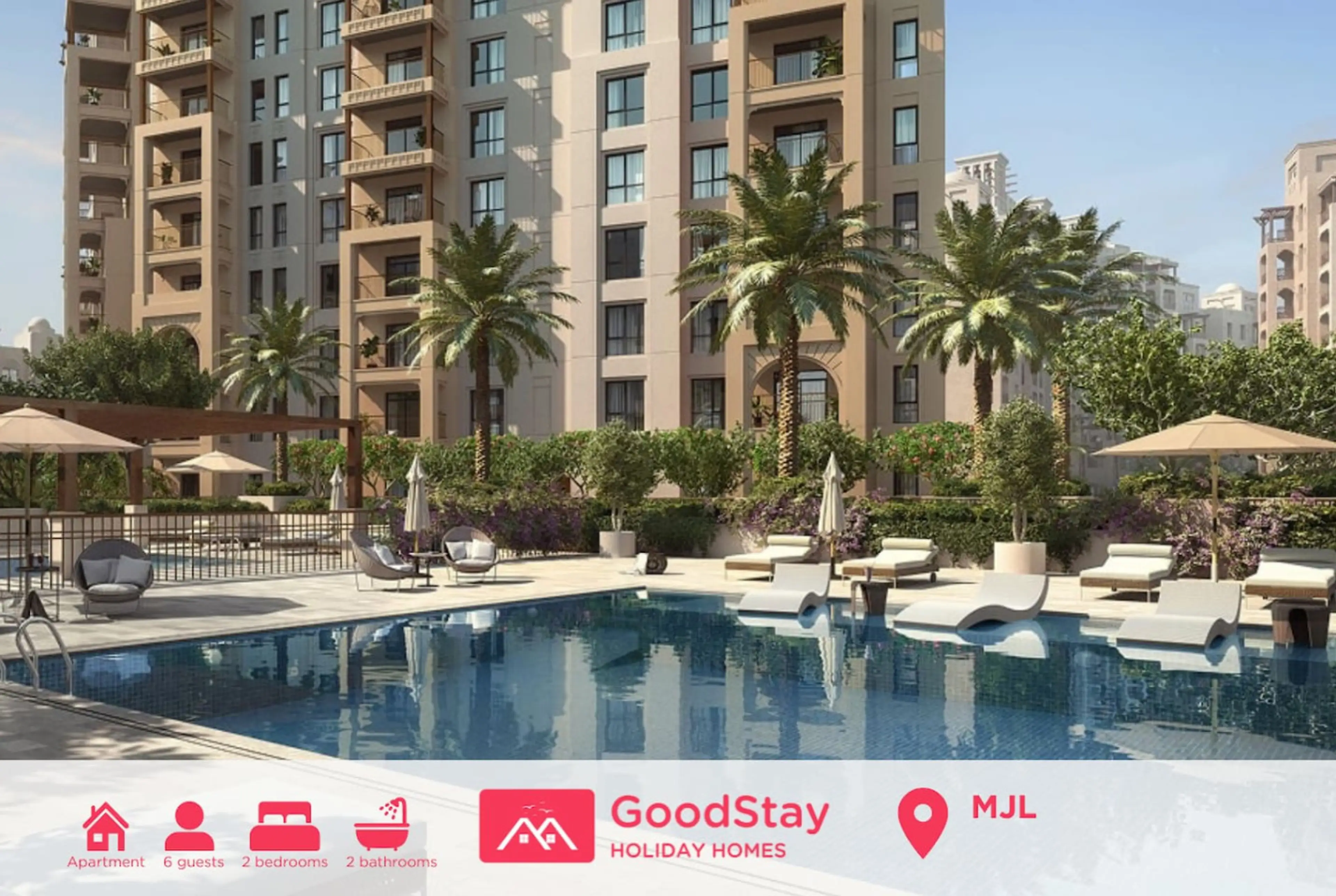 Elegant & refined 2BR apartment in Dubai’s exclusive MJL community — a serene, upscale residential enclave with lush greenery. Comfortably accommodates up to 6 guests. Fully furnished with a private balcony showcasing breathtaking view — ideal for calm mornings or tranquil evenings. Exclusive res...