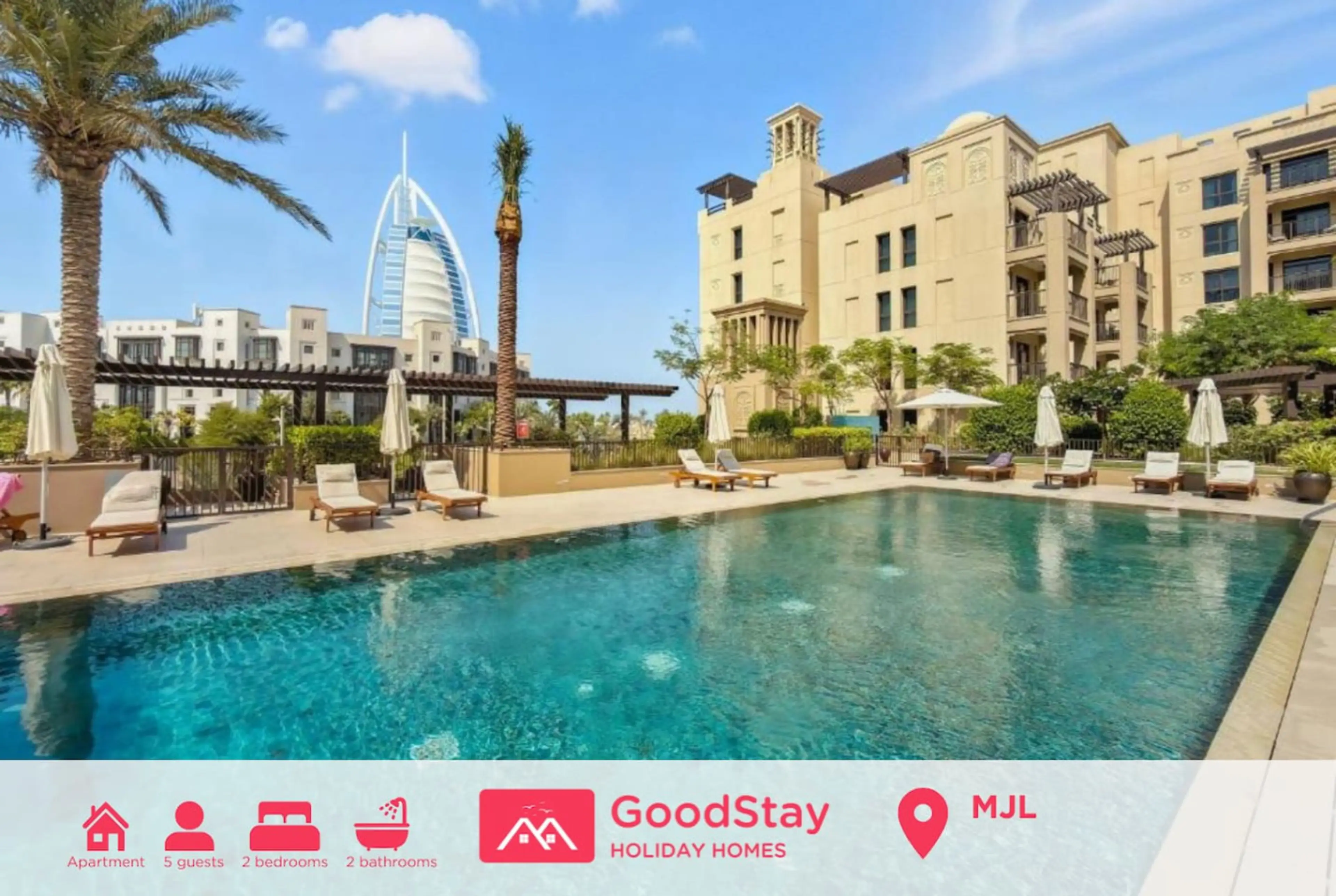 Stylish and elegant 2BR apartment in Dubai’s prestigious Madinat Jumeirah Living, a private and upscale residential community. 10 min walk from the iconic Burj Al Arab, the world-famous sail-shaped hotel. It can comfortably accommodate 5 guests. 11 minutes from a public BEACH, perfect for enjoying...