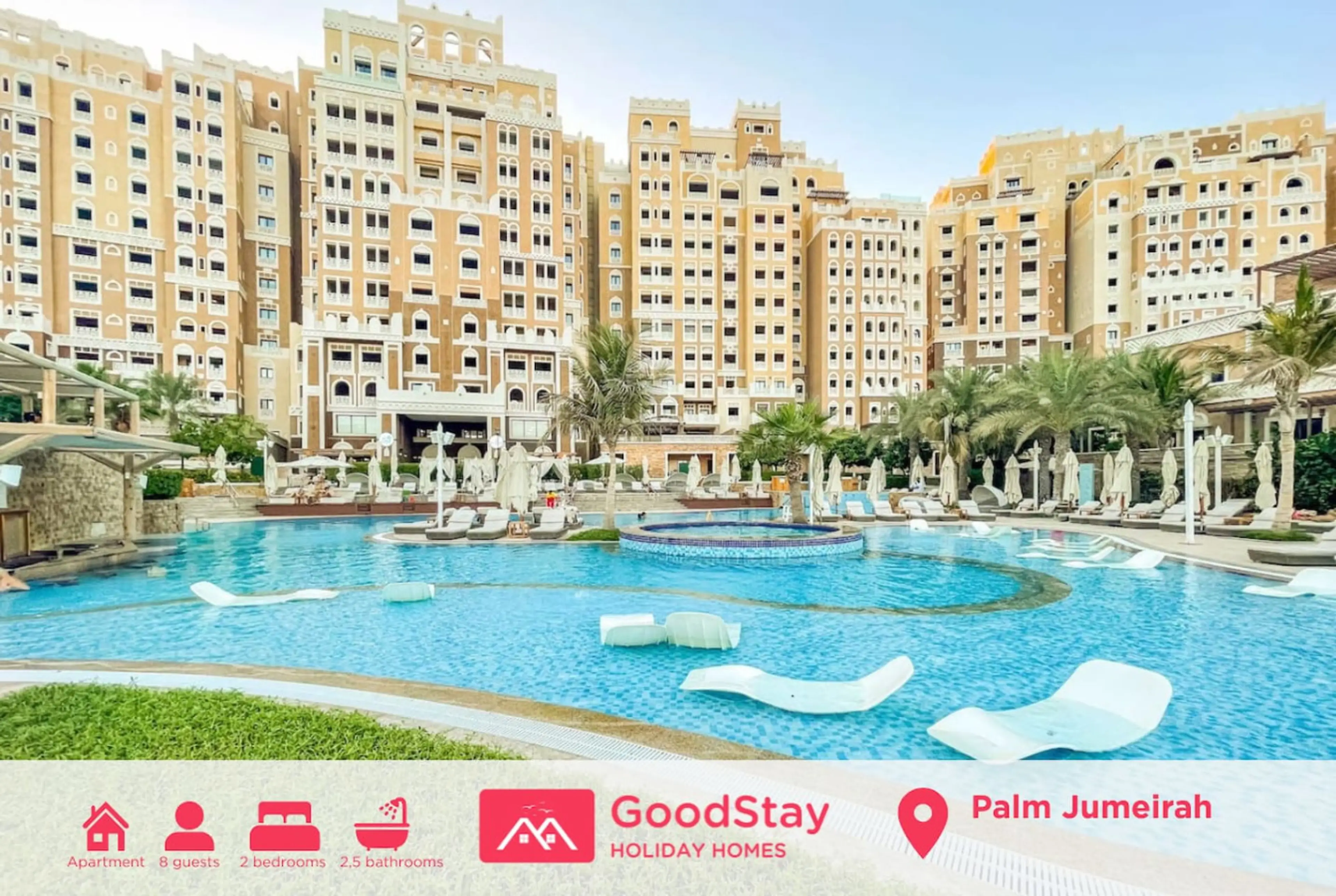 This beautiful fully-equipped 2-bedroom apartment is located on The Palm Jumeirah with a spacious balcony. It is perfect for family vacations. Available to you are our private BEACH and fully equipped apartment with kitchen. Neighboring our residency is a famous 5-star hotel Wyndham Residences Th...